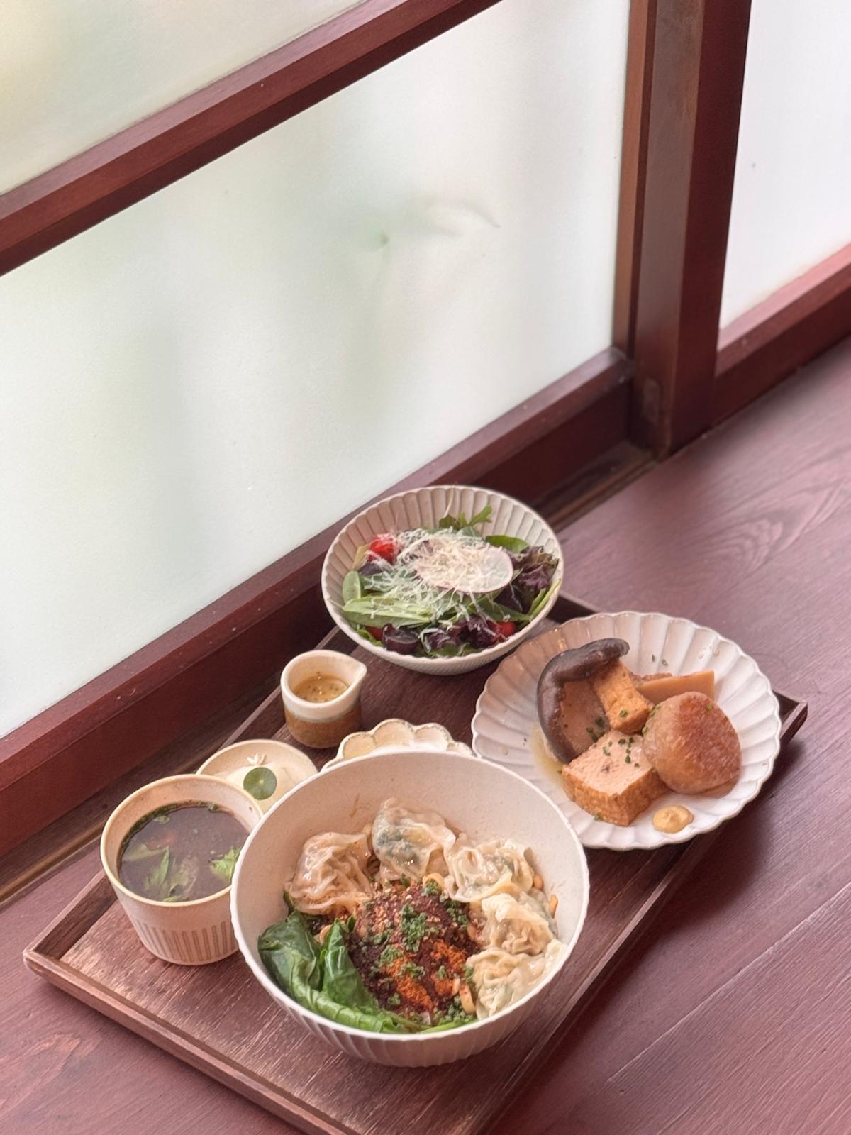 園區當中有兩間人氣餐廳,包括猶如隱藏於日式庭園當中的「箱庭山本屋」,還有自2022年起連續獲得米芝蓮比必登推介及米芝蓮綠星的「小小樹食(Little Tree Food)」。我選擇了在「小小樹食」吃午餐,餐廳室內有多個和室,古色古香而優雅。午市套餐主要提供麵食和沙律,將平易近人的素食做得精緻。別錯過餐廳的甜品,口味選擇多,香而不膩,每一口也是味蕾上的小確幸!