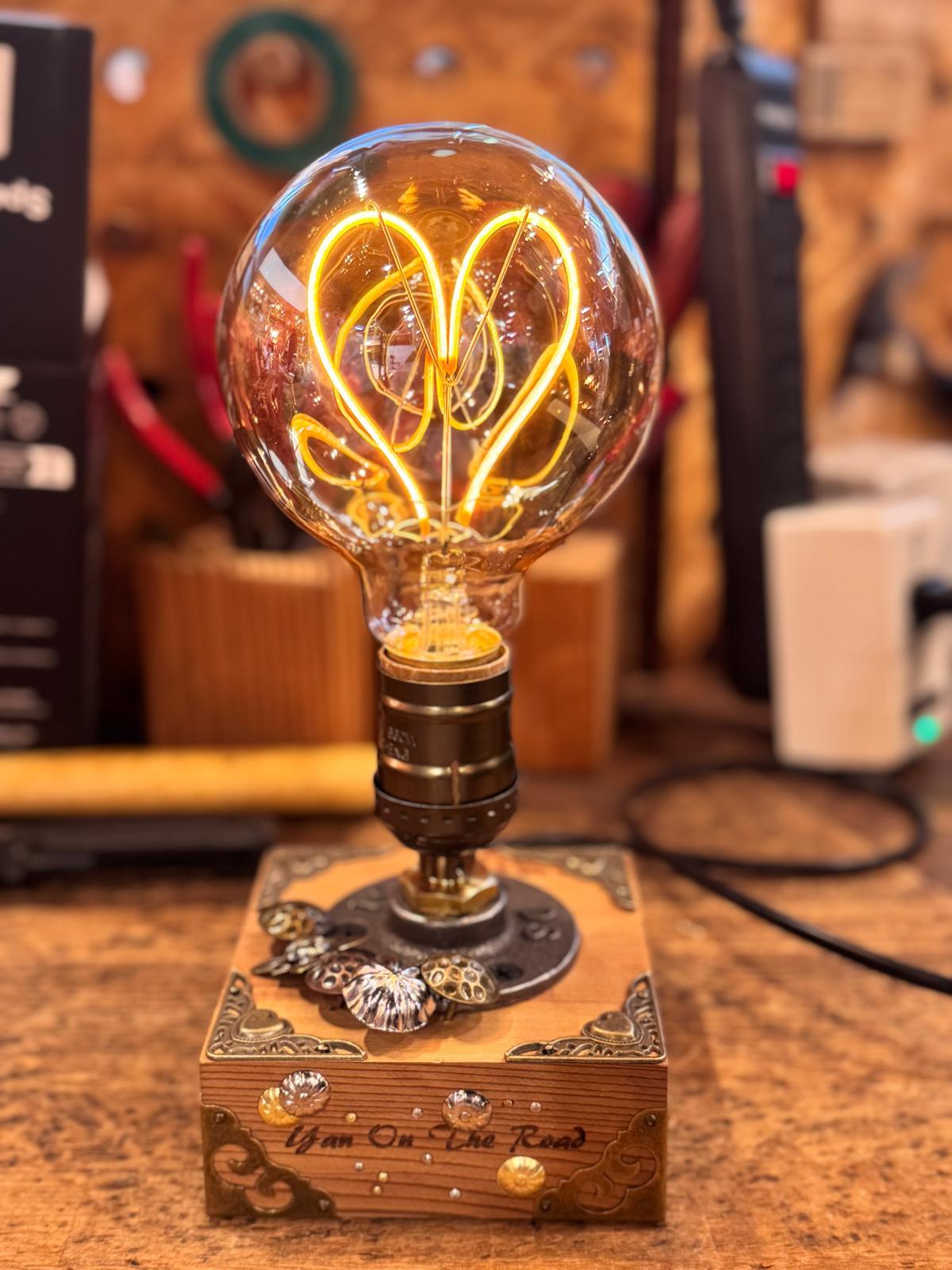 走進HUBOX,眼前的燈飾就像來自色調溫黃的老電影,每一款都令人想擁有。店內的導師都是年輕的匠人,真要感謝他們的溫柔、耐性、專業和熱誠,由我挑選木製燈座、構思雷射雕刻圖案和字樣、釘鑲金屬裝飾、組裝電線、裝上LED燈泡,整個過程從旁細心指導。即使拿起陌生的鐵鎚和電鑽,也有份安心和放心,得以盡情發揮創作力量。當燈泡亮起的那一刻,也照亮內心的成就感和滿足感。此時,也明白品牌背後的哲學:「工業風不是冷冰冰的,而是用溫暖的手作,點亮生活的小角落。」